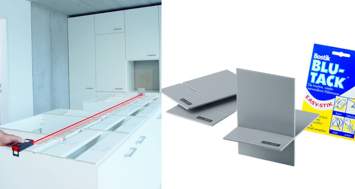 Gemaakt van robuust reflecterend plastic, de hoek richtplaat klemt in elkaar en wordt bevestigd op externe hoeken waardoor meten door 1 persoon in alle situaties mogelijk is.