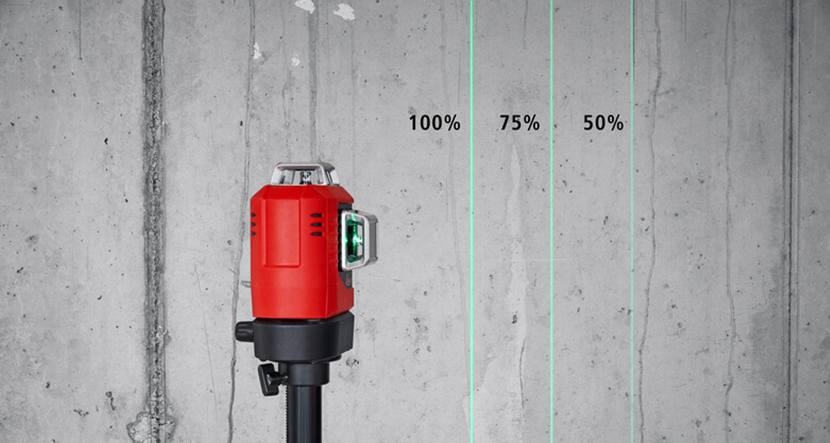 De groene lasertechnologie van de Leica L6G is aanzienlijk krachtiger dan die van conventionele rode lasers. In goed verlichte ruimtes, zoals bij binnenvallend daglicht of sterke plafondverlichting, zijn de groene laserlijnen 4 tot 6 keer beter zichtbaar. Dit maakt nauwkeurig werken mogelijk zonder dat je je werkplek hoeft te verduisteren of extra hulpmiddelen nodig hebt.