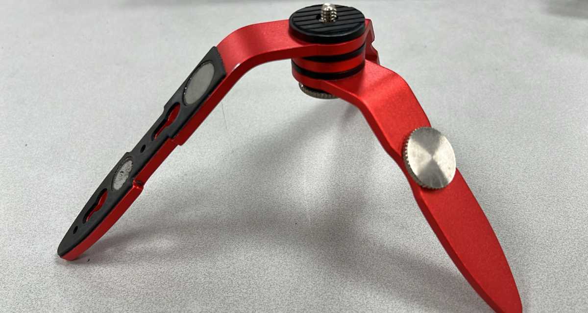 Dit ministatief is ontworpen voor maximale flexibiliteit in compacte ruimtes. Je kunt het rechtstreeks op een tafel, vloer of ander vlak oppervlak plaatsen, maar ook magnetisch bevestigen op metalen ondergronden. Hierdoor kun je snel schakelen tussen verschillende werkhoogtes en montagesituaties, zonder steeds een statief of houder om te bouwen.
