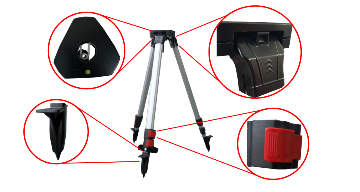 Met een minimum hoogte van 0,71 m en een maximale hoogte van 1,45 m is dit licht statief prima te gebruiken bij lichte lasers en waterpaskijkers.