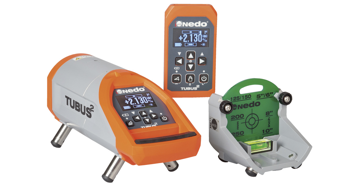 Alle relevante gegevens, zoals ingesteld afschot, dwarshelling, as uitlijning en toestand van de batterij worden overzichtelijk op het duidelijk gestructureerde OLED display van de laser en de afstandsbediening weergegeven. De gecombineerde draadloze en infraroodafstandsbediening garandeert een optimale zend performance zowel in het riool alsook boven het riool. Display en toetsenbord van rioollaser en afstandsbediening zijn identiek opgebouwd en maken een intuïtieve bediening mogelijk. Veelgebruikte functies kunnen direct met een druk op de knop worden opgevraagd. De as uitlijning gebeurt met behulp van de handmatige uitlijn functie. De dwarshelling van de laser wordt automatisch gecompenseerd, ook bij het in het lood stellen. De Nedo TUBUS 2 set wordt standaard zeer compleet geleverd incl. Acculader voor het gelijktijdig opladen van de laser en de afstandsbediening, In hoogte verstelbare doelplaat en opstel voeten sets voor buisdiameters van 150 mm, 200 mm, 250 mm en 300 mm.