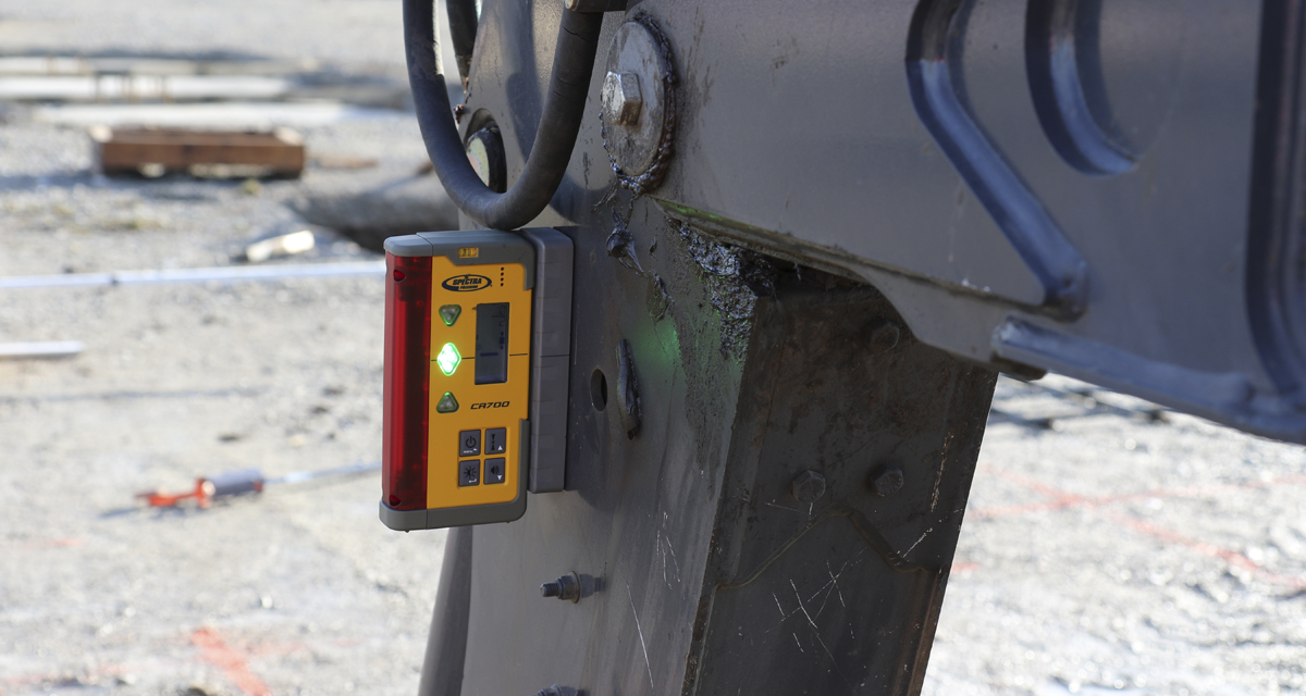 De Spectra Precision CR700 combinatie laser handontvanger en machine ontvanger in één. De Spectra CR700 is perfect te gebruiken als handontvanger d.m.v. de meegeleverde baakklem op de laser baak te monteren. Speciaal voor kleine graafmachines is er een sterke magneetklem meegeleverd, waardoor deze goed en eenvoudig te monteren is op de machine.