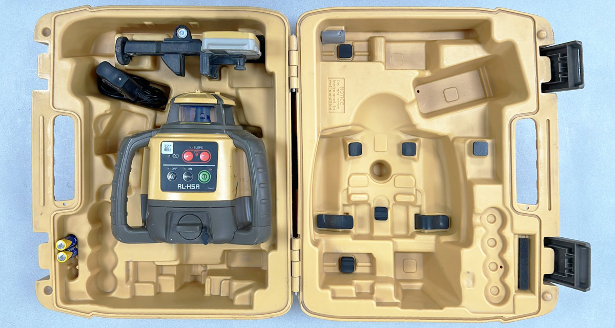 Goed werkende Topcon RL-H5A met laadconnector aan de voorzijde en LS-80L ontvanger